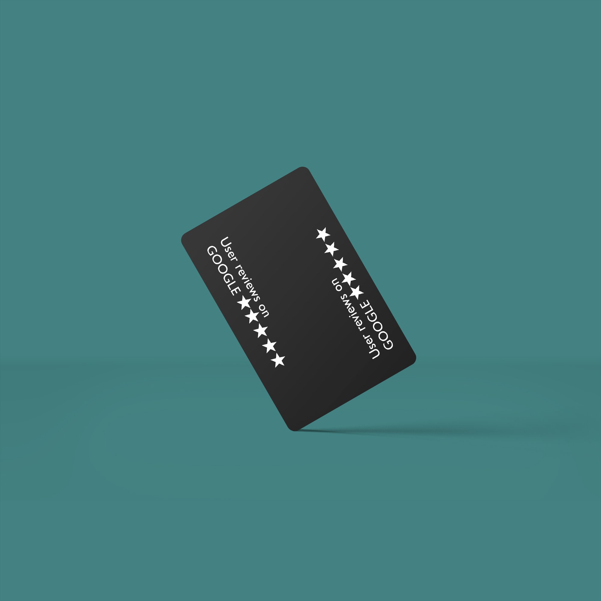 Cartão em PVC personalizado com tecnologia NFC e programação do link Google Reviews.